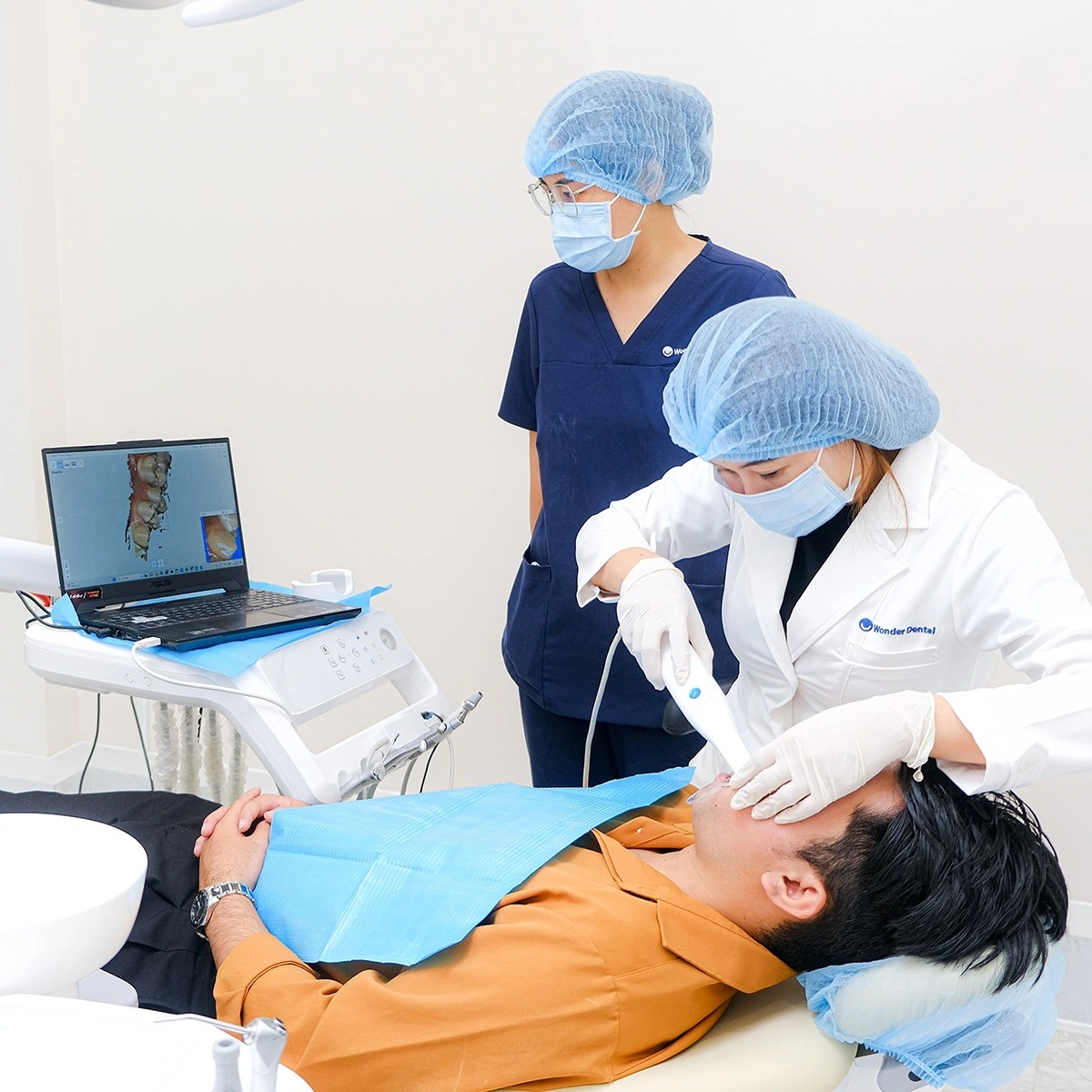 Bạn sẽ được đặt lịch hẹn khám, scan răng 3D và tư vấn chuyên sâu từ đội ngũ chuyên gia của chúng tôi tại phòng khám. Sau đó khoảng 3-5 ngày, bạn sẽ nhận được kế hoạch điều trị chi tiết với phác đồ thực hiện bởi các bác sĩ tại Singapore. Kế hoạch điều trị sẽ bao gồm: thời gian điều trị, các thủ thuật nha khoa cần thiết, mô phỏng quá trình và kết quả dịch chuyển răng bằng video 3D.